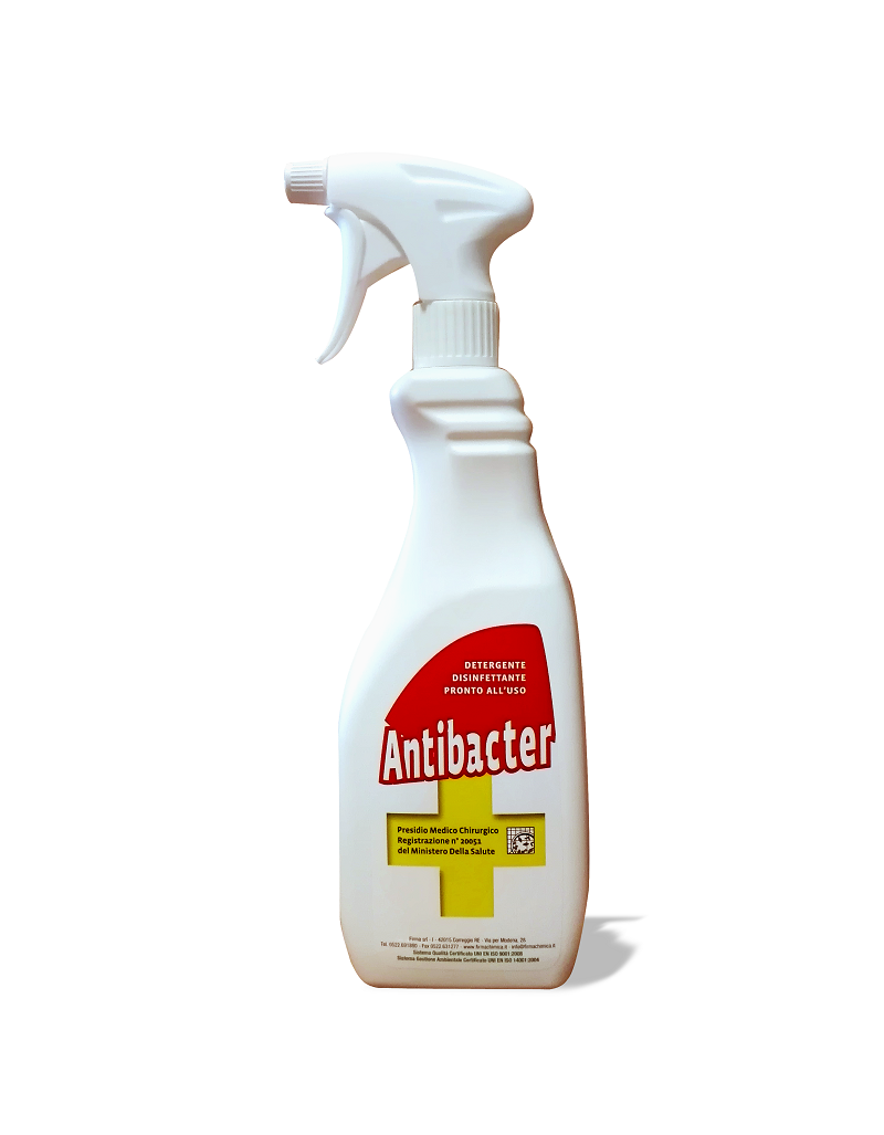 Detergente disinfettante dotato di trigger spray, universale pronto all’uso, inodore ed incolore da 750 ml. Agisce su batteri gram positivi (staphylococcus aureus, enterococcus hirae), gram negativi (escherichia coli, pseudomonas aeruginosa) e contaminazioni fungine e muffe (candida albicans e aspergillus niger).